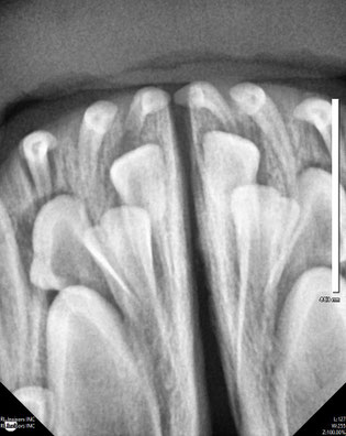 Kieferknochen oder Zahnwurzel, die ohne eine Röntgenaufnahme nicht gefunden werden können.